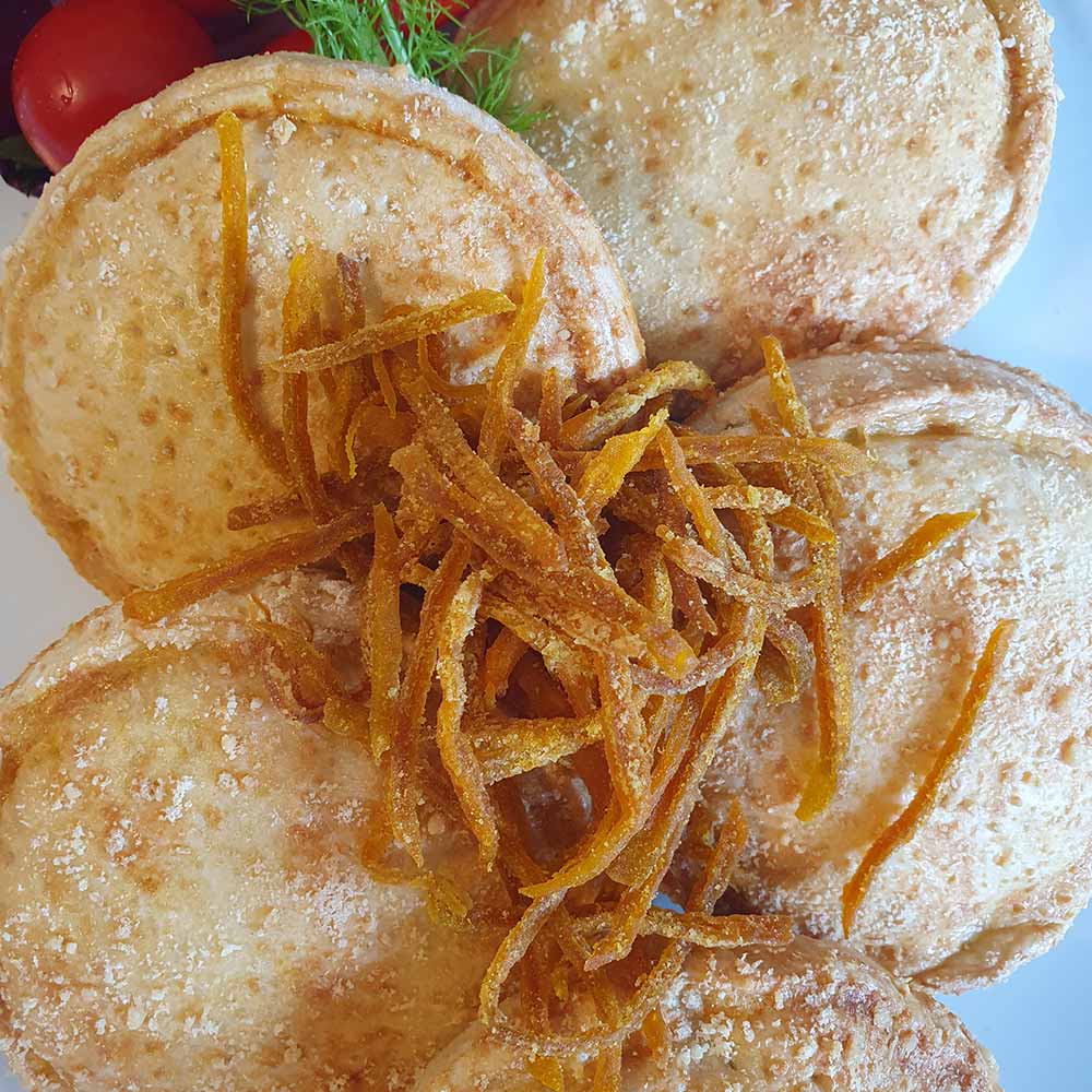Un boccone che profuma d’autunno: la dolcezza della zucca incontra il guanciale, racchiusi in una frolla croccante e vellutata di formaggio.